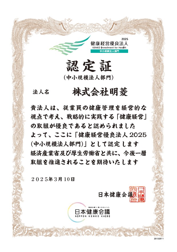 この度弊社は、「健康経営優良法人2025」に認定されました。